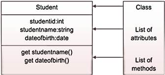 § A class diagram is a rectangle, divided into 3 parts. The first gives the name of the class, the second gives the facts that should be known about any element belonging to that class and the third gives methods that can be used to look at the facts that are stored in the class.Â