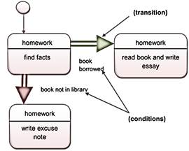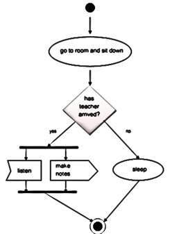§ Similar to a flow chart in procedural programing, although it shows the activities necessary to get an object into a particular state, rather than the development of the logic behind the code.